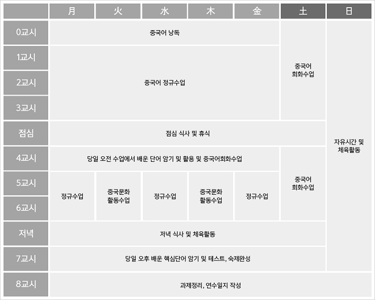 ¡Ü ±âÃʹÝ/HSK3±Þ/4±Þ/5±Þ ¼öÁغ° HSK ÁýÁß¼ö¾÷ ¡Ü ¸ÅÁÖ ½ÇÀü HSK ¸ðÀǰí»ç¸¦ ÅëÇÑ ²ÙÁØÇÑ ½Ç·ÂÁ¡°Ë ¡Ü ´õºù°úÁ¦¸¦ ¸ÅÀÏ ÈÆ·ÃÇÏ¸é¼ Áß±¹¾î ³¶µ¶°ú ¹ßÀ½ ÈÆ·Ã, ÀÚ¿¬½º·´°Ô Èï¹ÌÀ¯¹ß°ú µ¿±âºÎ¿© ¡Ü ¸»Çϱâ ÁýÁß¼ö¾÷À» ÅëÇØ Áß±¹¾î È¸È ½Ç·Â ÇѴܰè UP ¡Ü Áß±¹ ¹®È޹æ (2¹Ú 3ÀÏ »óÇØ ½Ã³» ¹× »óÇØ µðÁî´Ï·£µå) ¡Ü ¼ºÀå±â û¼Ò³âÀÇ °Ç°À» °í·ÁÇÑ ¿µ¾ç½Ä´Ü Á¦°ø ¡Ü Àú·ÅÇÑ ºñ¿ë°ú ºÎ´ã¾ø´Â ±â°£ ¡Ü ·ÕÈÀÌ ¹æÇдܱ⠹êµå (¾ÆÀ̵é Ȱµ¿»çÁøÀ» ¿Ã·Á ºÎ¸ð´Ô ±Ã±ÝÁõ ÇØ¼Ò)