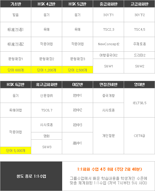 °úÇÐÀûÀ̰í ü°èÀûÀÎ Á¾·Î¸¸ÀÇ ½Ã½ºÅÛÀ¸·Î ´Ü±â°£¿¡ È®½ÇÇϰí È¿°úÀûÀÌ°Ô ½Ç·ÂÀ» Çâ»ó½ÃÄѵ帮¸ç, ƯÈ÷ ¹ßÀ½.¼ºÁ¶ µî Áß±¹¾îÀÇ ±âÃʸ¦ È®½ÇÇÏ°Ô Àâ¾ÆÁÖ¾î, ÃëÁ÷Áغñ·Î Áß±¹¾î°¡ ÇÊ¿äÇÑ ºÐÀ̳ª, Áß±¹ ´ëÇÐ ÀÔÇÐÀ» ¸ñÇ¥·Î ÇÏ´Â ºÐµéÀ» À§ÇÑ ÇÁ·Î±×·¥À¸·Î ±¸ºñµÇ¾î ÀÖ½À´Ï´Ù.